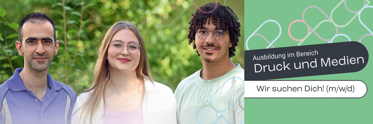 Die Theorie wird im Berufsschulunterricht in Bielefeld vermittelt. Alle praktischen Kenntnisse erlernst du in unserer Abteilung Mediengestaltung/CTP.
