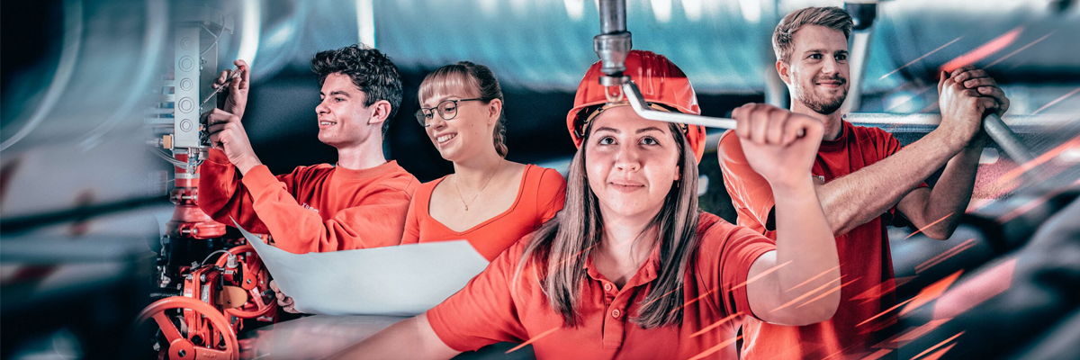 Azubine Antonia gibt Einblicke in ihren Berufsalltag als Anlagenmechanikerin. Sie ist für die Installation und Funktion unserer Brandschutzanlagen verantwortlich.