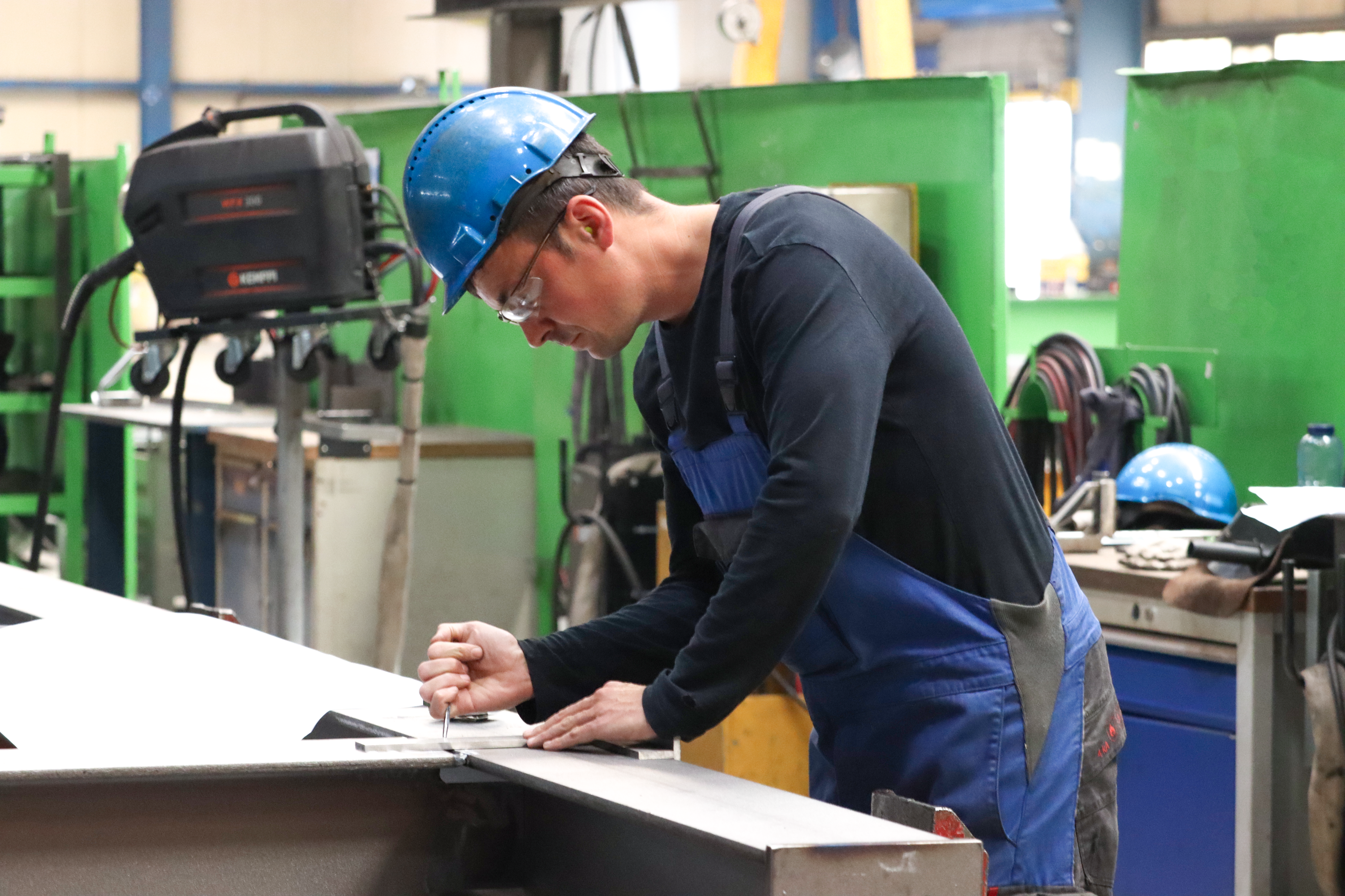Während deiner 3-jährigen Ausbildung zum Konstruktionsmechaniker (m/w/d) lernst du wie man den Werkstoff Stahl bearbeitet und aus Blechen, Rohren oder Profilen komplexe Stahlkonstruktionen nach Zeichnungsvorgabe und Stückliste fertigt. Hierfür wendest du verschiedene manuelle und maschinelle Fertigungsverfahren und Schweißtechnologien an und organisierst selbstständig deine Arbeitsabläufe. In der Berufsschule erwirbst du u.a. Grundlagen der Metallverarbeitung, Werkstoffkunde, Konstruktionszeichnung für Bauteile aus Metall planst und erstellst. Dieses Wissen wendest du schließlich bei uns in der Lehrwerkstatt und ab dem zweiten Lehrjahr auch in unserer Fertigung an.