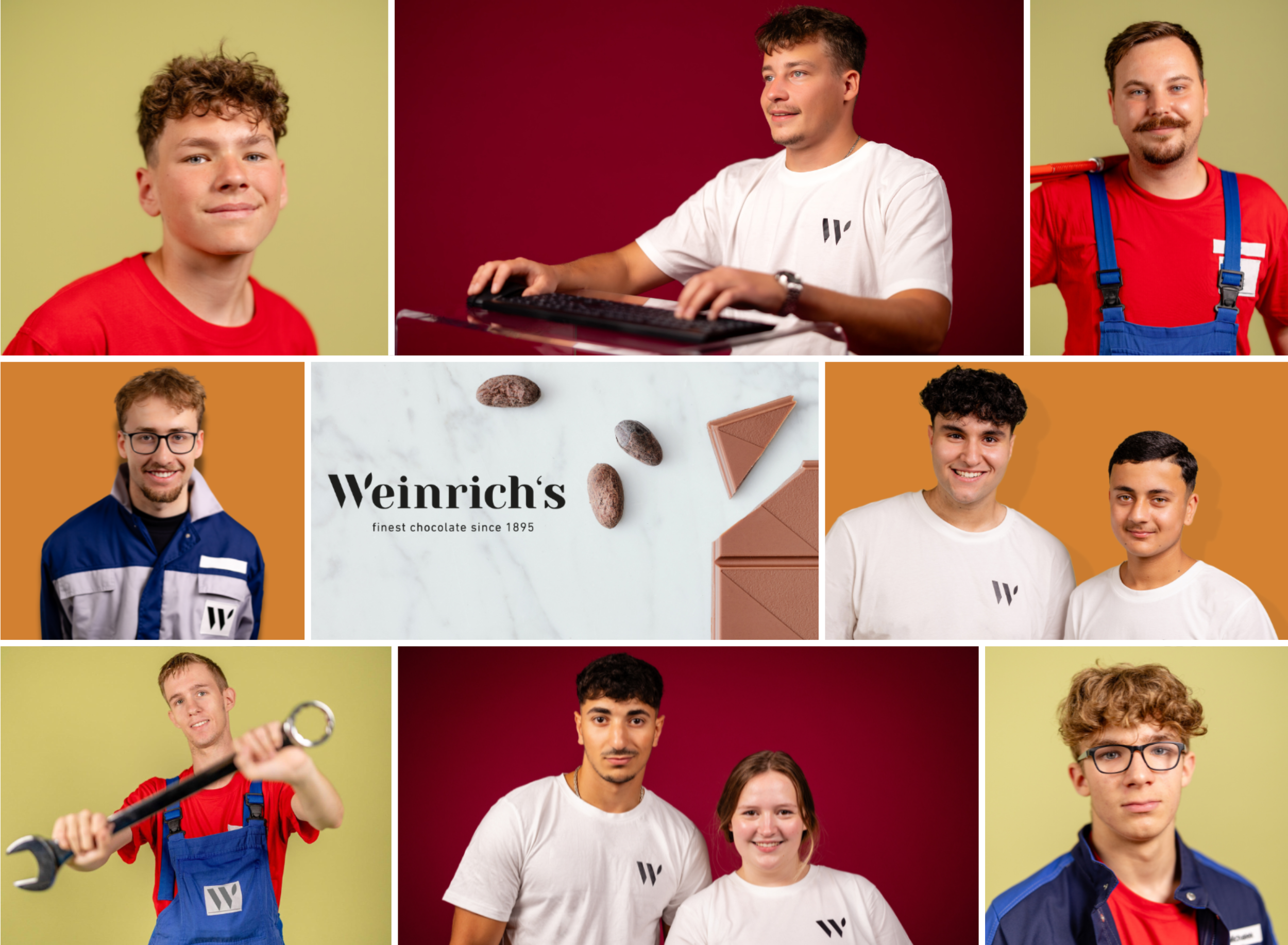 Seit jeher steht die Weinrich Schokoladenfabrik für Ausbildung auf höchstem Niveau – im Kreis Herford und weit darüber hinaus. Viele Fachkräfte, die einst bei uns gelernt haben, arbeiten heute erfolgreich in unserem Unternehmen. Die Hälfte der rund 400 Mitarbeitenden sogar seit über zehn Jahren! Als Familienunternehmen geführt, arbeiten hier alle Bereiche Hand in Hand. Wir bilden ein qualifiziertes, dynamisches Team, das die Freude an der schönsten Nebensache der Welt – Schokolade – lebt und gerne mit Ihnen teilen möchte!